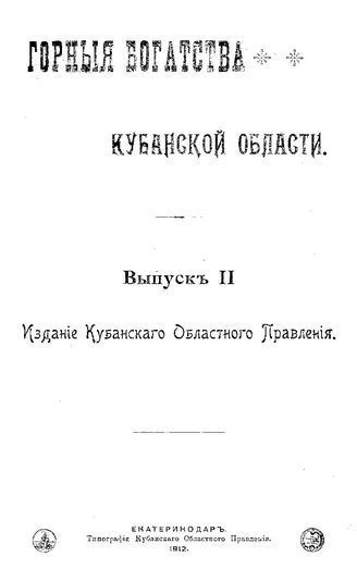 Горные богатства Кубанской области : сборник. Вып. 2, 1912. - 95 с.