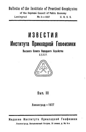 Известия Института прикладной геофизики Высшего совета народного хозяйства. Вып. 3, 1927. - 416 с.