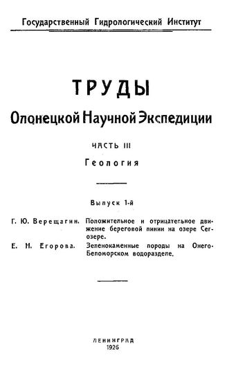 Труды Олонецкой научной экспедиции Олонецкая науч. экспедиция (1920-1924). Ч. 3 : Геология, Вып. 1. - Л., 1924.