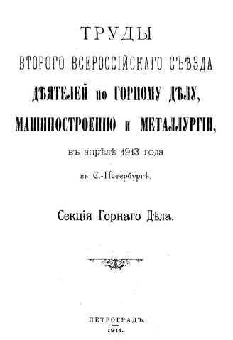 Труды Второго Всероссийского съезда деятелей по горному делу, машиностроению и металлургии. Секция горного дела. - Петроград, 1914.