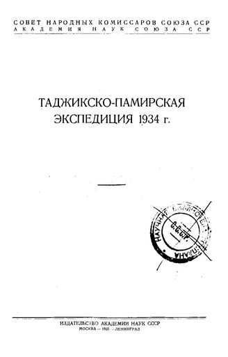 Таджикско-Памирская экспедиция 1934 г. : [сборник] / АН СССР, 1935. - 504 с.
