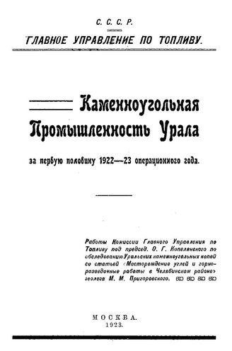 Каменноугольная промышленность Урала и Сибири СССР. Главное упр. по топливу. за первую половину 1922-23 операционного года. - М., 1923.