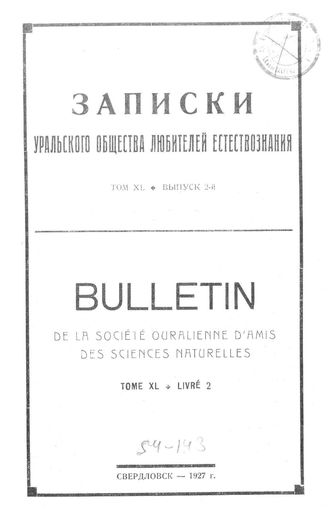 Записки Уральского общества любителей естествознания / Уральское о-во любителей естествознания (Свердловск). Т. 40, Вып. 2, Б.г. - 142 с.