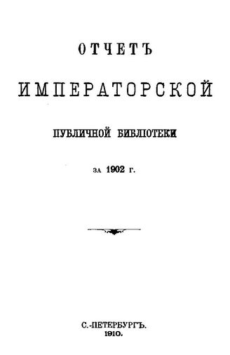 Отчет Императорской публичной библиотеки. за 1902 г., 1910. - 247 с.