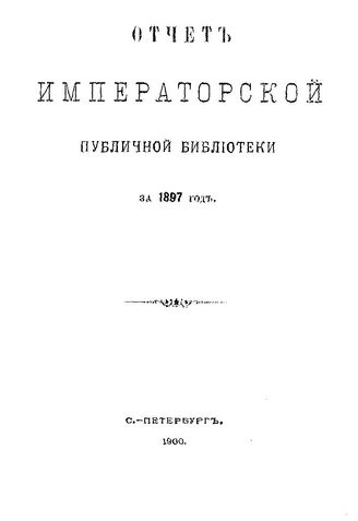 Отчет Императорской публичной библиотеки. за 1897 г., 1900.