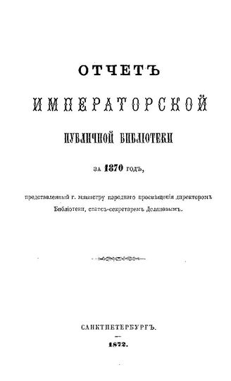 Отчет Императорской публичной библиотеки. 1870 г.. - Б. м., 1872.