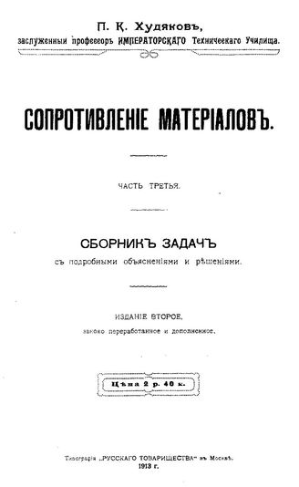Худяков П.К. Сопротивление материалов. - М., 1913.
