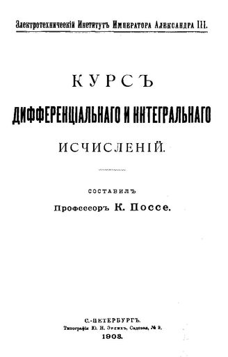 Поссе К. Курс дифференциального и интегрального исчислений. - СПб., 1903.