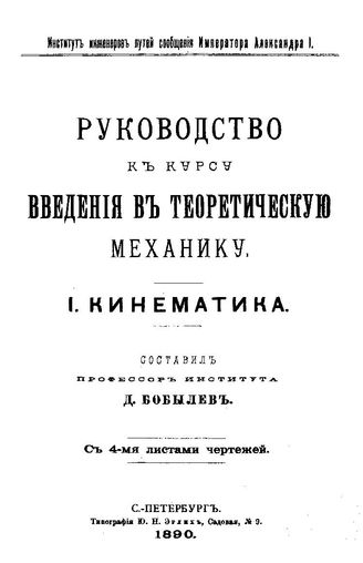 Руководство к курсу введения в теоретическую механику сост. Д. Бобылев. 1, 2 : Кинетика. - СПб., 1890.
