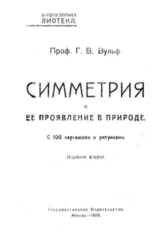 Вульф Г.В. Симметрия и ее проявление в природе. - М., 1919.