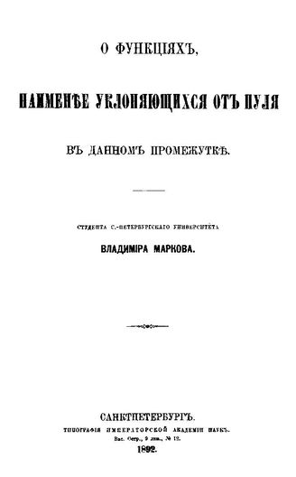 Главная Математика Марков В. О функциях, наименее уклоняющихся от нуля в данном промеж...