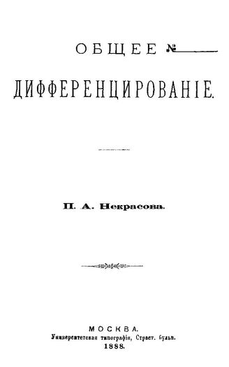 Некрасов П.А. Общее дифференцирование / П. А. Некрасов, 1888. - 122 с.