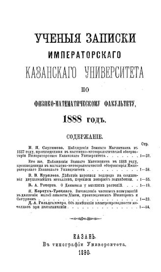 Ученые записки Императорского Казанского университета по Физико-математическому факультету. 1888 г., 1890 паг.