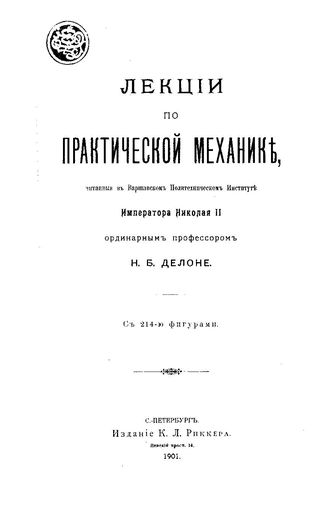 Делоне Н.Б. Лекции по практической механике. - СПб., 1901(СПб.).