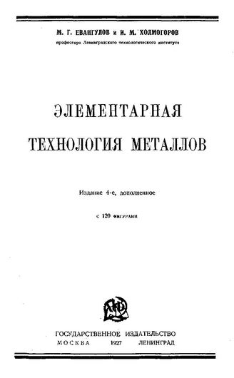 Евангулов М. Г. Элементарная технология металлов / М. Г. Евангулов, И. М. Холмогоров, 1927. - 71.