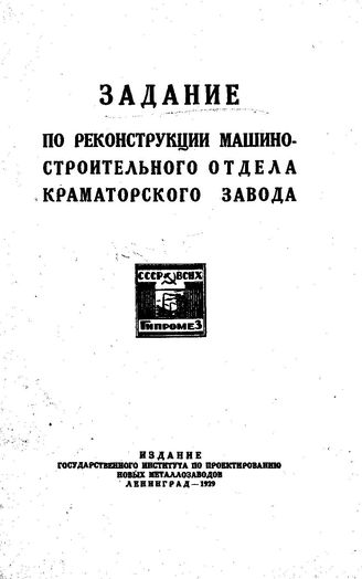 Задание по реконструкции машиностроительного отдела краматорского завода. - СПб., 1929.