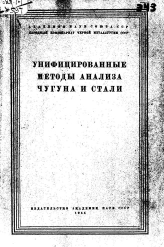 Унифицированные методы анализа чугуна и стали, 1944. - 112 с.