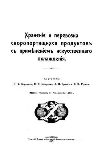 Бородин Н.А. Хранение и перевозка скоропортящихся продуктов с применением искусственного охлаждения. - СПб., 1913.