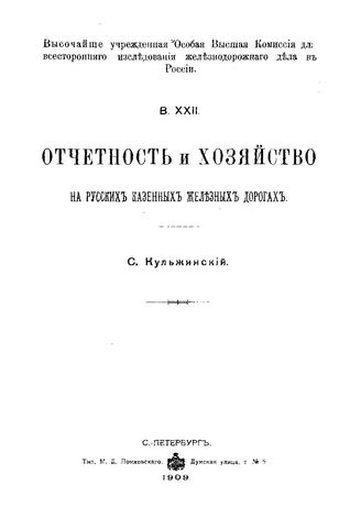 Кульжинский Н. Отчетность и хозяйство на русских казенных железных дорогах. - СПб., 1909.