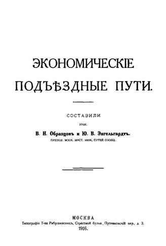 Экономические подъездные пути [Электронный ресурс] / сост. В. Н. Образцов, Ю.В. Энгельгардт, 1916. - 85 с.