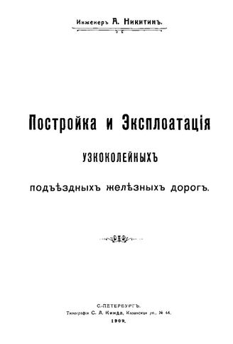 Никитин А. Постройка и эксплуатация узкоколейных подъездных железных дорог. - , 1909.