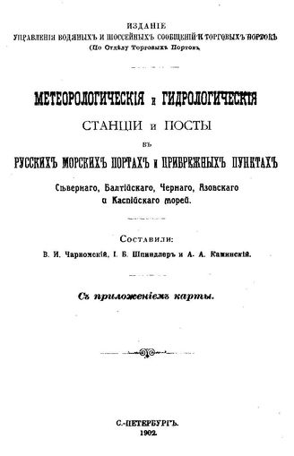 Метеорологические и гидрологические станции и посты в русских морских портах и прибрежных пунктах Северного, Балтийского, Черного, Азовского и Каспийского морей / сост. В. И. Чарномский и др., 1902. - 104 с.