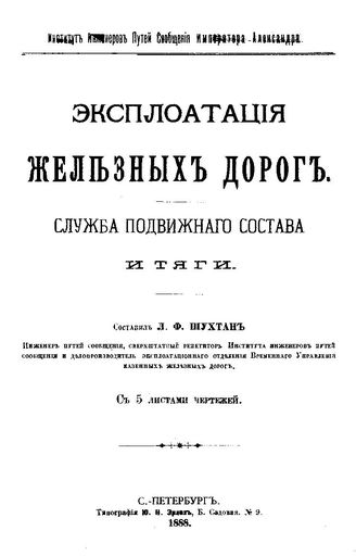 Эксплуатация железных дорог. Служба подвижного состава и тяги / сост. Л. Ф. Шухтан, 1888. - 164 164 с.