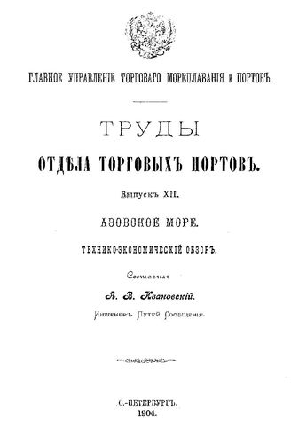 Ивановский А. В. Труды Отдела торговых портов. Вып. 12 : Азовское море. - СПб., 1904.