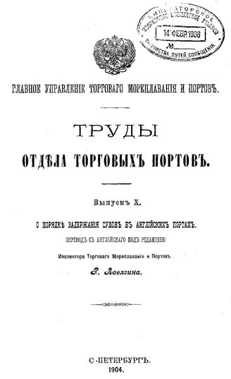 Труды Отдела торговых портов. Вып. 10 : О порядке задержания судов в английских портах. - СПб., 1904.