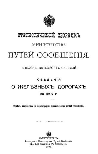 Статистический сборник Министерства путей сообщения. Вып. 57 : Сведения о железных дорогах за 1897 г., 1899 паг.