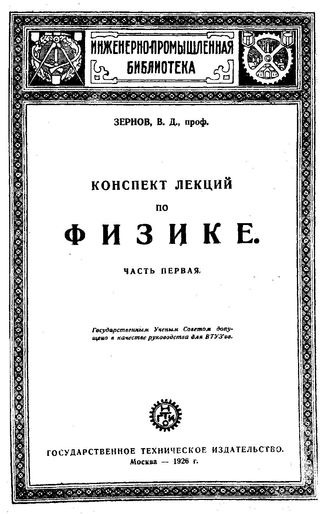 Зернов В. Д. Конспект лекций по физике [Электронный ресурс]. Ч. 1 : Механический отдел физики. Молекулярная физика. Тепловые явления, 1926. - 108 с.