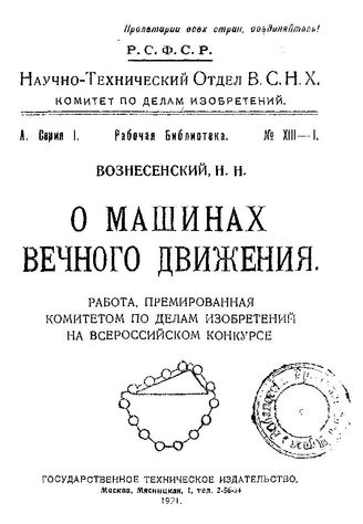Вознесенский Н.Н. О машинах вечного движения / Н. Н. Вознесенский, 1921. - 58 с.