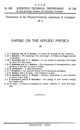 Труды Ленинградской физико-технической лаборатории. Вып. 3 : Сборник работ по прикладной физике, 3. - М., 19.