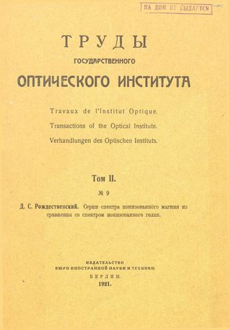 Рождественский Д.С. Труды Государственного оптического института. Т. 2, № 9. Серии спектра ионизированного магния из сравнения со спектром ионизированного гелия. - М., 19.