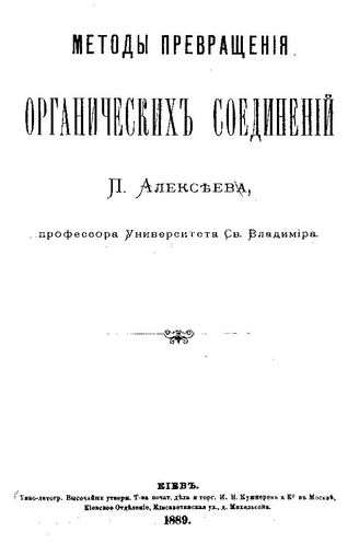 Алексеев П. Методы превращения органических соединений [Электронный ресурс] / П. Алексеев, 1889. - 188 с.