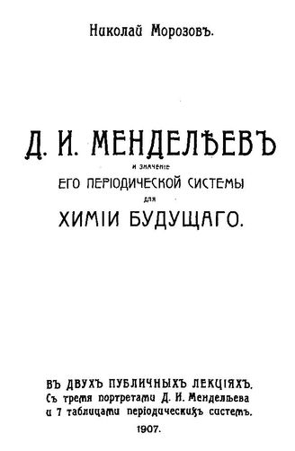 Морозов Н. Д. И. Менделеев и значение его периодической системы для химии будущего. - М., 1908.