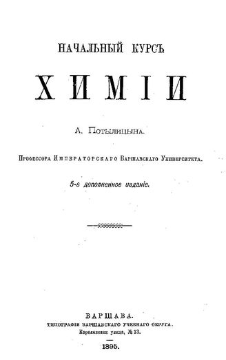 Потылицын А. Начальный курс химии. - Варшава, 1895.