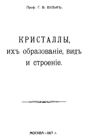 Вульф Г.В. Кристаллы, их образование, вид и строение. - М., 1917.