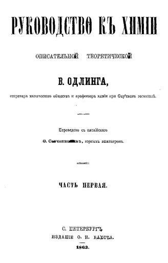 Одлинг В. Руководство к химии описательной, теоретической. Ч. 1. - СПб., 1863.