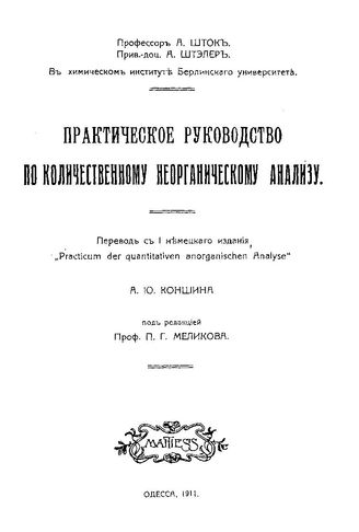 Шток А., Штэлер А. Практическое руководство по количественному неорганическому анализу. - Одесса, 1911.