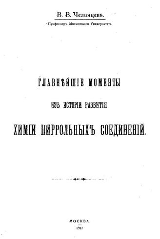 Челинцев В.В. Главнейшие моменты из истории развития химии пиррольных соединений. - М., 1917.