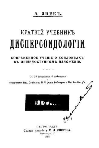Янек А. Краткий учебник дисперсоидологии. Современное учение о коллоидах в общедоступном изложении. - Петроград, 1915.
