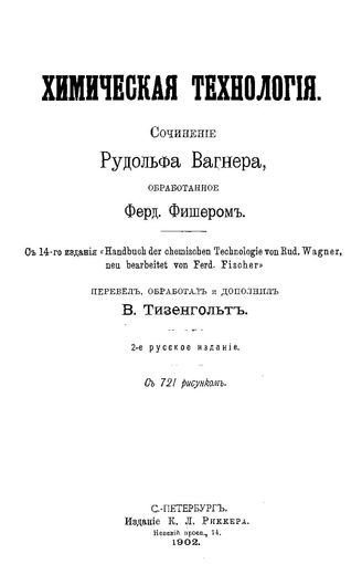 Вагнер Р. Химическая технология. - СПб., 1902.