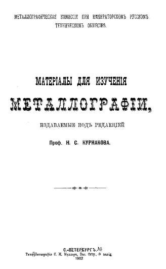 Курнаков Н.С. Материалы для изучения металлографии. - СПб., 1902.