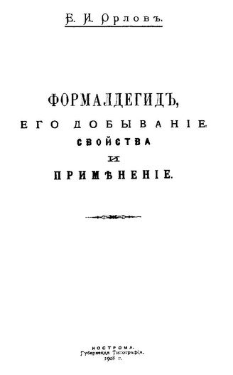 Орлов Е. И. Формальдегид, его добывание, свойства и применение. - Кострома, 1908.
