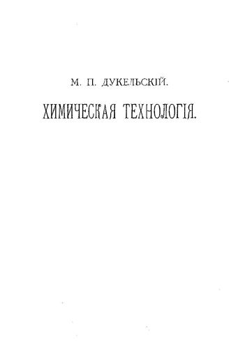 Дукельский М.П. Химическая технология. - СПб., 1913.