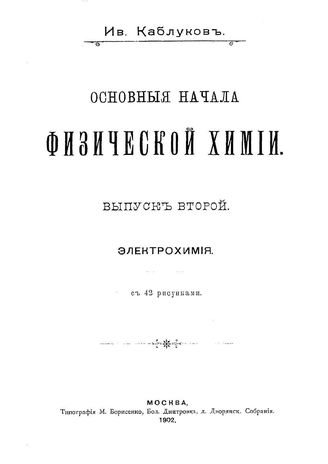 Основные начала физической химии / И. Каблуков. Вып. 2 : Электрохимия, 1902. - 259 с.