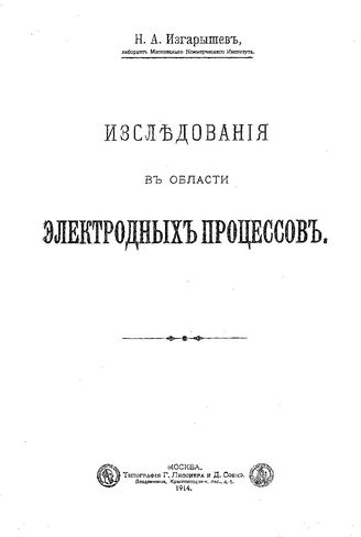 Изгарышев Н.А. Исследования в области электродных процессов. - М., 1914.