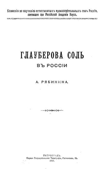 Рябинин А. Глауберова соль в России. - Петроград, 1920.