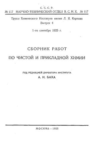 Сборник работ по чистой и прикладной химии / Химический ин-т им. Л. Я. Карпова. Вып. 4, 1925. - 233 с.